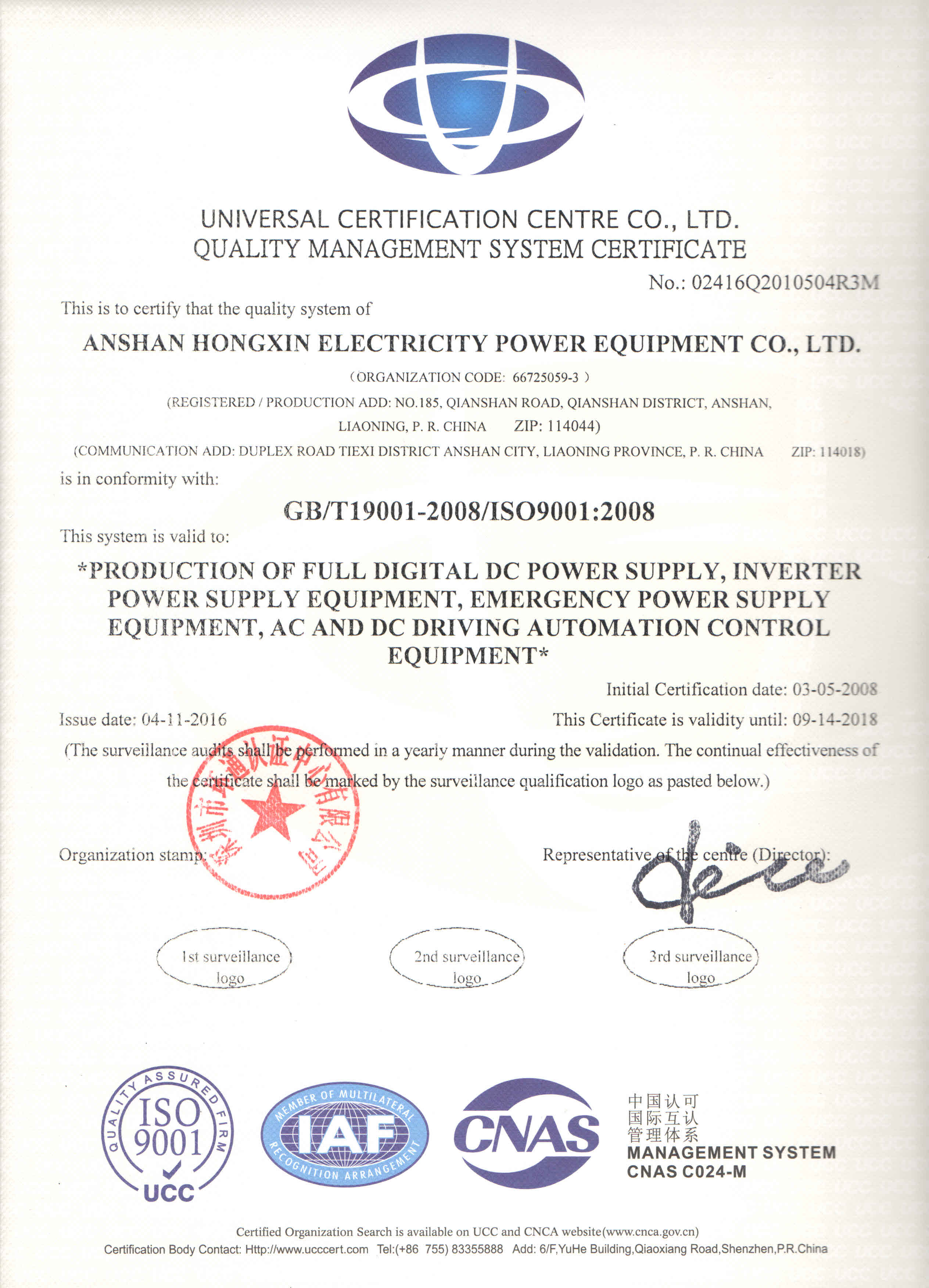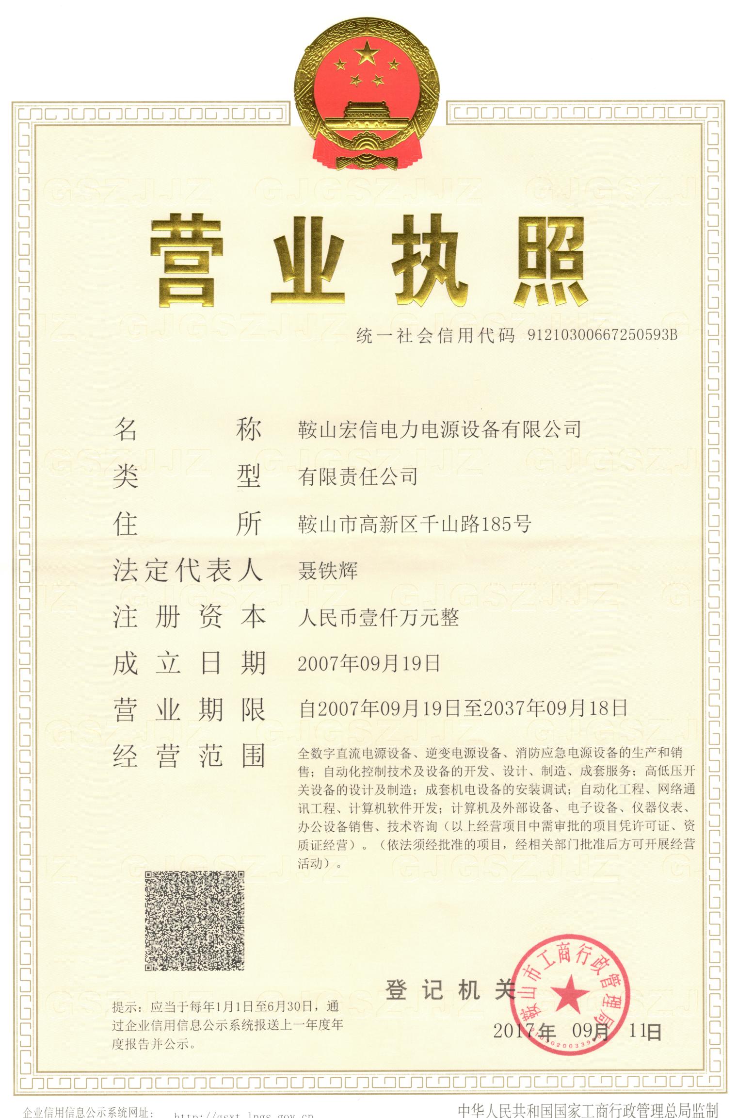鞍山宏信电力电源设备有限公司注册成立